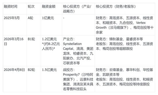 参与这两轮投资的机构阵容庞大且多元。产业方不仅有Prosperity7,还包括滴滴、美团龙珠,以及北汽产投、芯联资本等汽车与芯片产业链资本;财务投资方则汇聚了高瓴创投、云锋基金、线性资本、五源资本等。